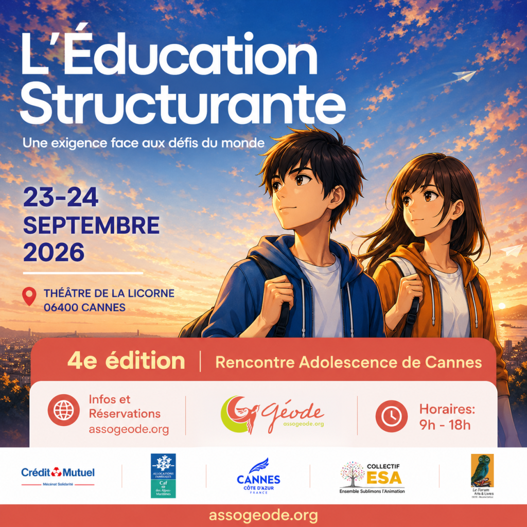 Tout un cycle de conférences seront proposées par l’Association Géode dans le département des Alpes-Maritimes prochainement, centrées principalement sur la relation aux adolescents, sur les problématiques qu’ils rencontrent et que le parents et éducateurs ont à accompagner : scolarité, harcèlement, réseaux sociaux, écrans, genre, sexualité, crise existentielle, addictions….